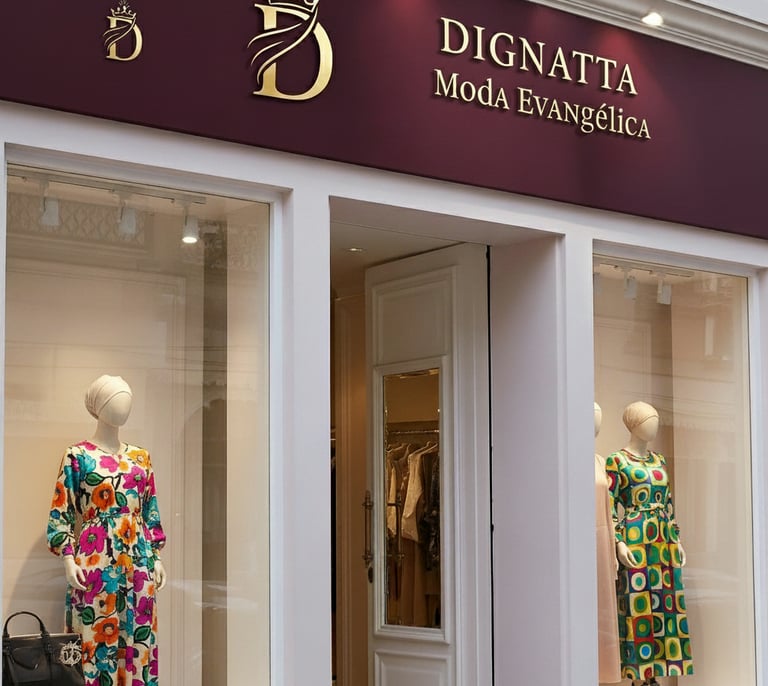 Estamos localizados em um ambiente sofisticado, refletindo a elegância da Dignatta Moda Evangélica.